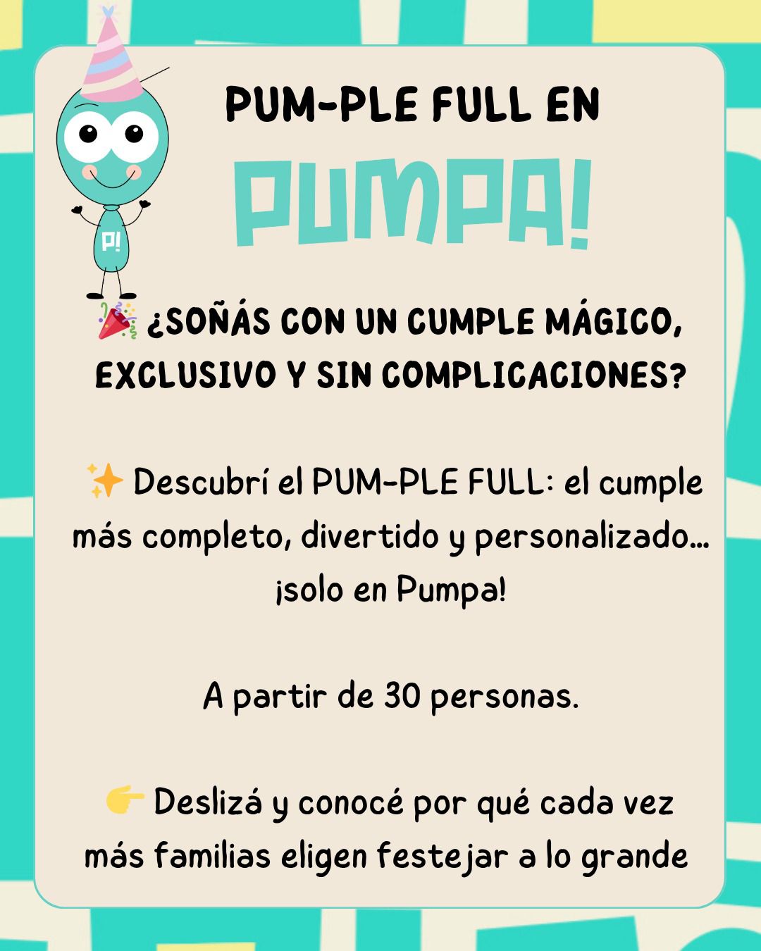 Viví la experiencia completa de cumpleaños: PUMPA! exclusivo sólo para el cumple de tu peque.