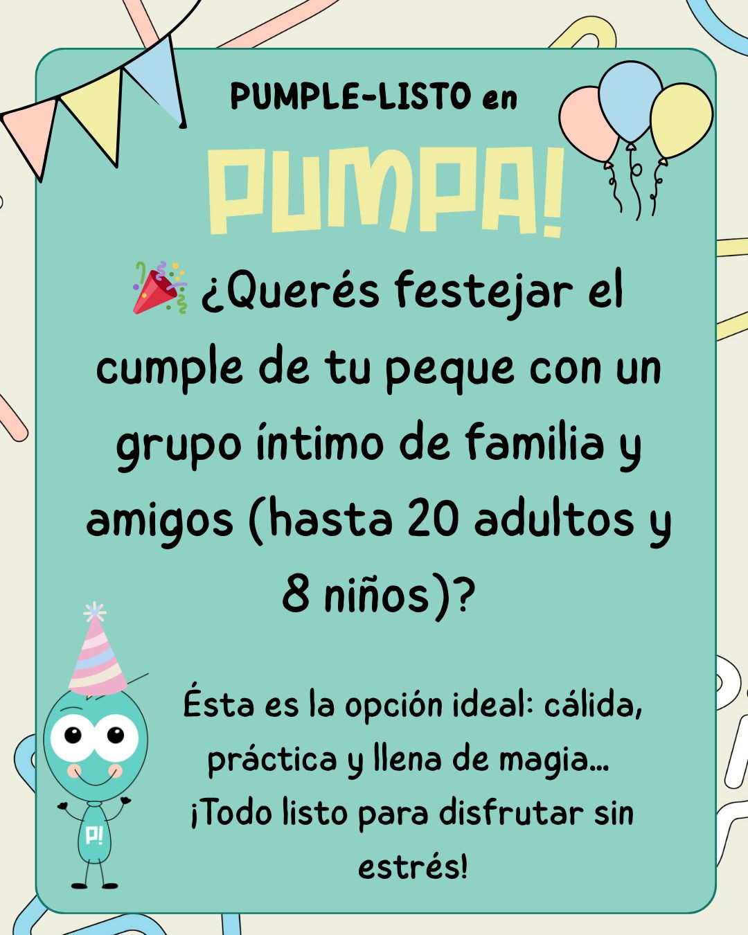 Viví la experiencia completa de cumpleaños: PUMPA! exclusivo sólo para el cumple de tu peque.